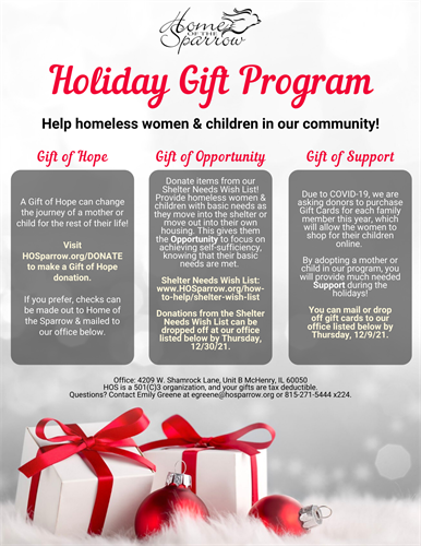 Name: Home of the Sparrow: Holiday Gift Program 2021 with THREE Giving Opportunities!